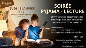 PANNEAU SOIREE PYJAMA LECTURE 18 JANVIER 2024 (21 × 10 po) (22 × 10 po) (Présentation)